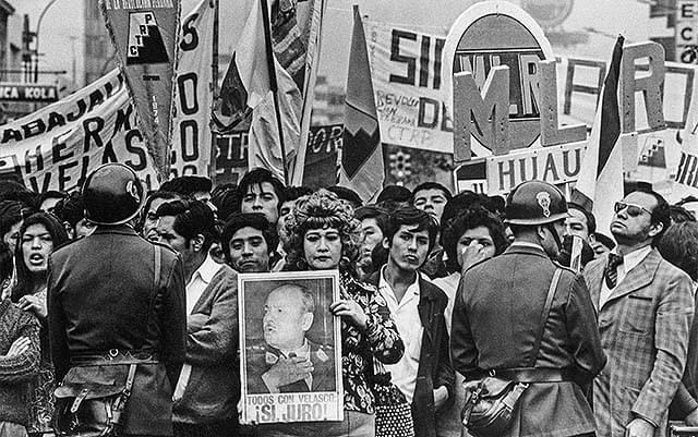 1968年10月のクーデターで第50代ペルー共和国大統領に就任したフアン・ベラスコ・アルバラード率いる軍部革命政権が行ったペルー革命。69年に公布された農地改革法は、それまでのペルーの土地と市民権をめぐる闘争に重大な変化をもたらした。