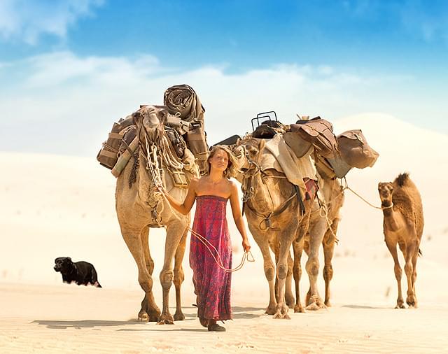 ラクダと愛犬とともにオーストラリア砂漠3000キロをたった1人で踏破した女性の実話を、「アリス・イン・ワンダーランド」のミア・ワシコウスカ主演で映画化したロードムービー。思い通りにいかない人生に変化を求め、ひとり都会から砂埃が舞うオーストラリア中央部の町アリス・スプリングスにやってきた女性ロビン。彼女がこの土地に訪れた目的は、砂漠地帯を踏破しインド洋を目指す旅に出ることだった。パブで働きながらラクダの調教を学び、旅の準備を整えたロビンは、4頭のラクダ、愛犬とともに町から旅へと出発する。1日あたり約32キロのペースで歩き、7カ月という日数をかけて達成したその旅の過程で、ロビンはさまざまな出会いや経験を体験することとなる。