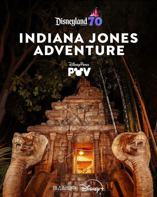 (C)2025 Disney ディズニープラスで独占配信中カリフォルニア ディズニーランド・リゾートの開園70周年を祝して、アナハイムの人気アトラクションを主観ショット(POV)で臨場感たっぷりに楽しめる映像コレクション「Disneyland 70」。全16タイトルのうち、トップクラスの人気を誇るのが「インディ・ジョーンズ・アドベンチャー」だ。